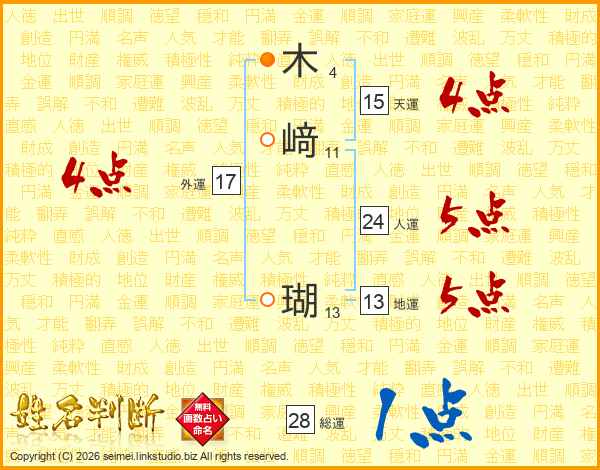 木﨑瑚さんの総運は28画の1点!