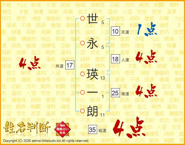 世永瑛一朗さんの総運は35画の4点!