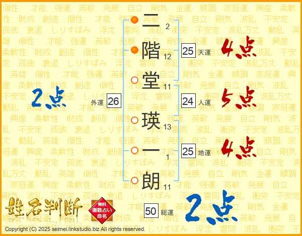 二階堂瑛一朗さんの地運は25画の4点!