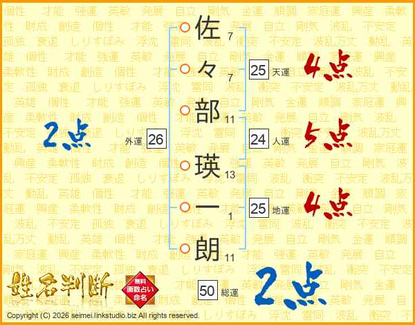 佐々部瑛一朗さんの地運は25画の4点!