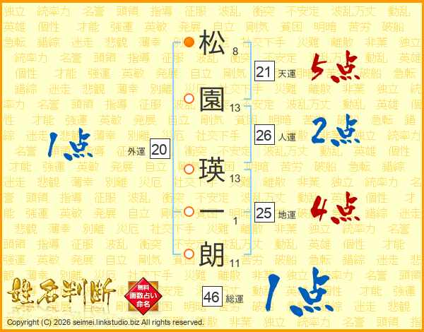 松園瑛一朗さんの人運は26画の2点!