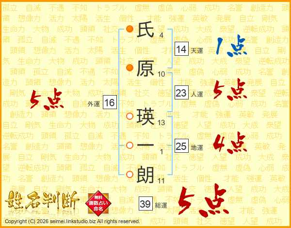 氏原瑛一朗さんの総運は39画の5点!