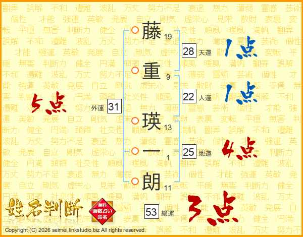 藤重瑛一朗さんの総運は53画の3点!