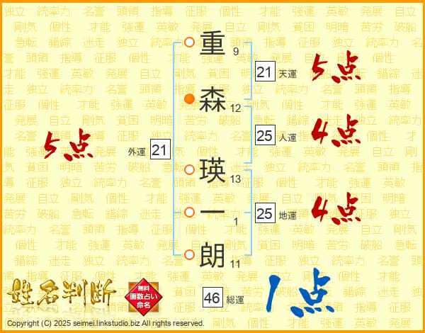 重森瑛一朗さんの人運は25画の4点!