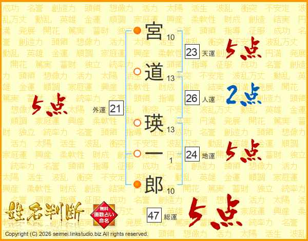 宮道瑛一郎さんの総運は47画の5点!