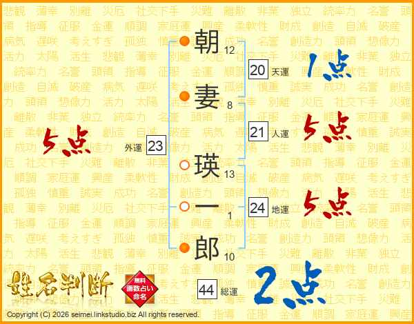 朝妻瑛一郎さんの総運は44画の2点!
