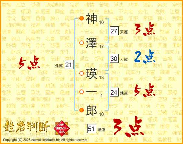 神澤瑛一郎さんの総運は51画の3点!