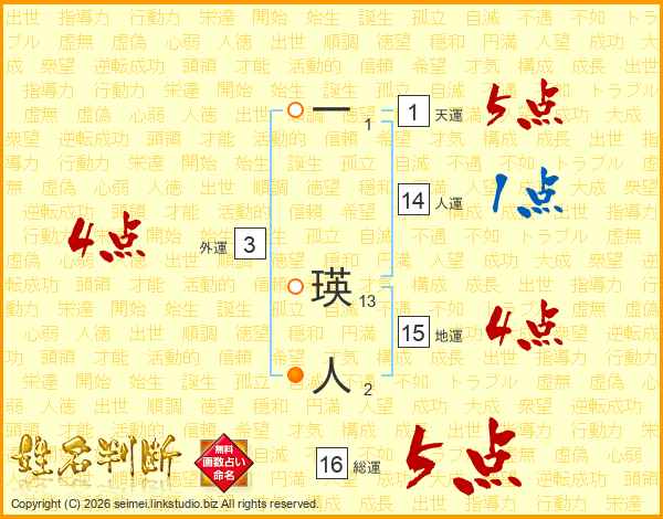 一瑛人さんの総運は16画の5点!