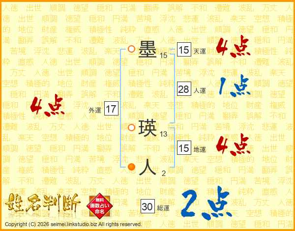 墨瑛人さんの総運は30画の2点!
