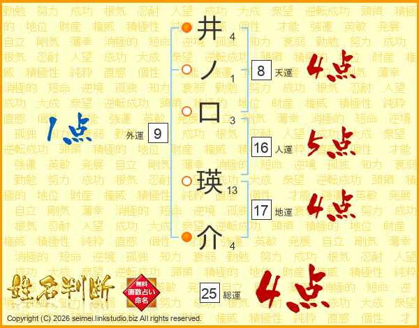 井ノ口瑛介さんの総運は25画の4点!