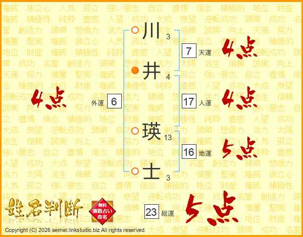 川井瑛士さんの総運は23画の5点!
