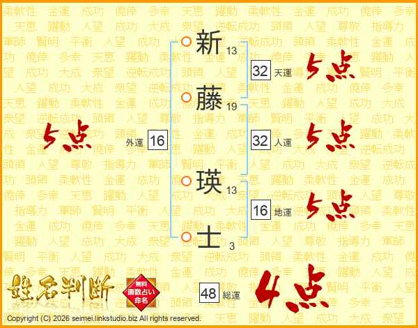新(13画)藤(19画) 瑛(13画)士(3画)