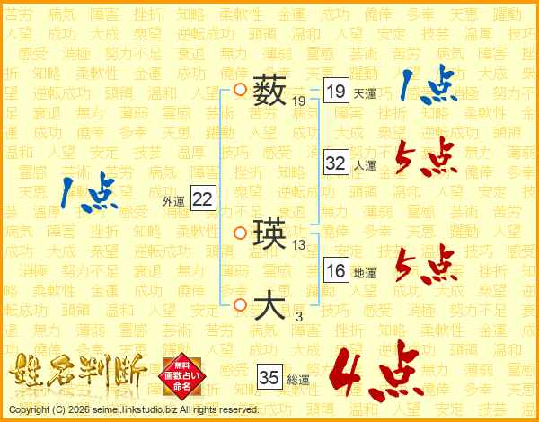 薮瑛大さんの総運は35画の4点!