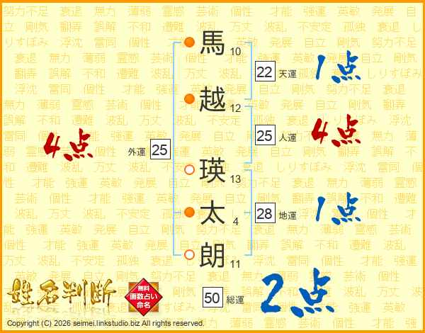 馬越瑛太朗さんの総運は50画の2点!