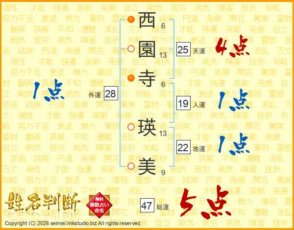 西園寺瑛美さんの総運は47画の5点!