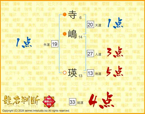 寺(6画)嶋(14画) 瑛(13画)