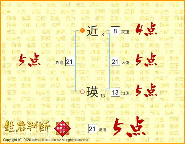 近瑛さんの総運は21画の5点!