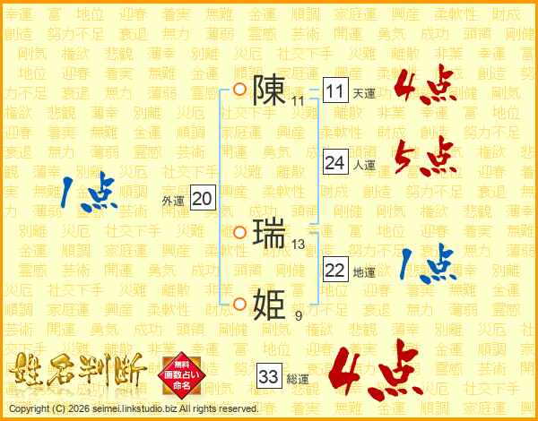 陳瑞姫さんの総運は33画の4点!