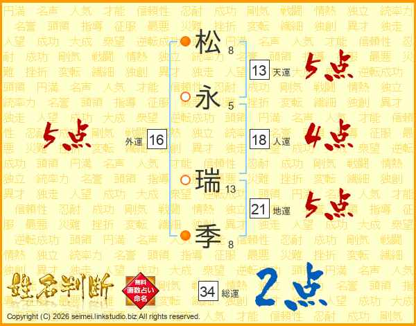 松(8画)永(5画) 瑞(13画)季(8画)