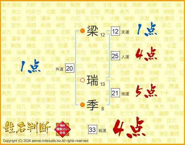 梁瑞季さんの総運は33画の4点!