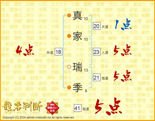 真家瑞季さんの総運は41画の5点!