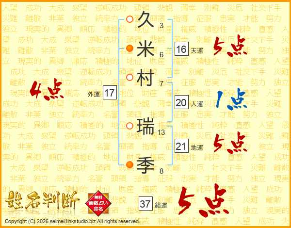 久(3画)米(6画)村(7画) 瑞(13画)季(8画)