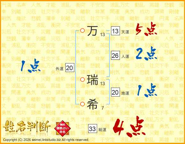 万瑞希さんの総運は33画の4点!