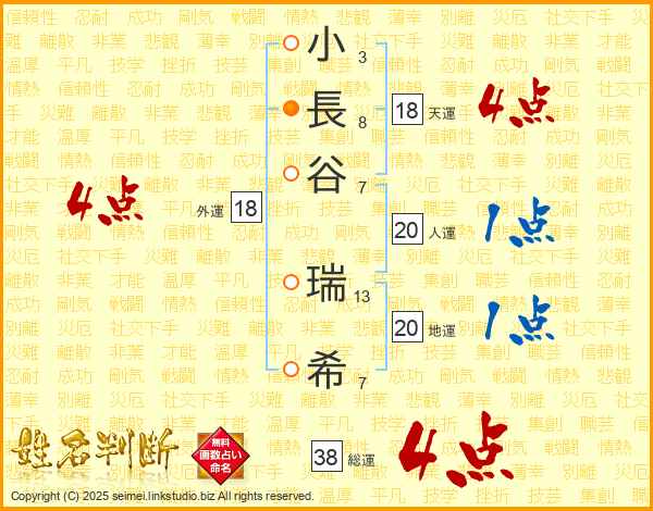 小長谷瑞希さんの総運は38画の4点!