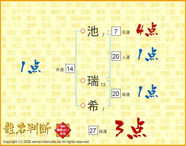 池瑞希さんの外運は14画の1点!