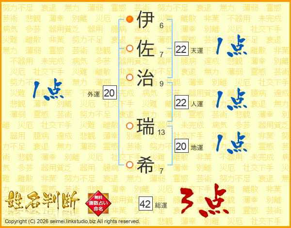 伊佐治瑞希さんの総運は42画の3点!