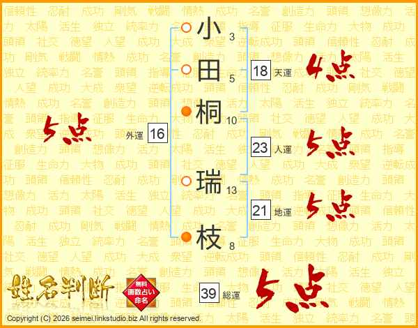 小田桐瑞枝さんの総運は39画の5点!