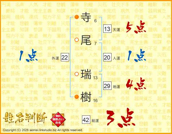 寺(6画)尾(7画) 瑞(13画)樹(16画)