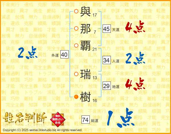 與(17画)那(7画)覇(21画) 瑞(13画)樹(16画)