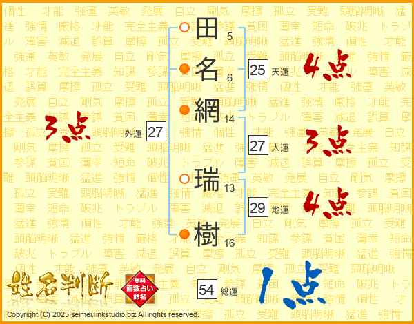 田名網瑞樹さんの天運は25画の4点!