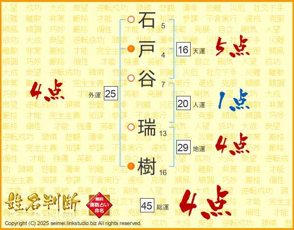石戸谷瑞樹さんの総運は45画の4点!
