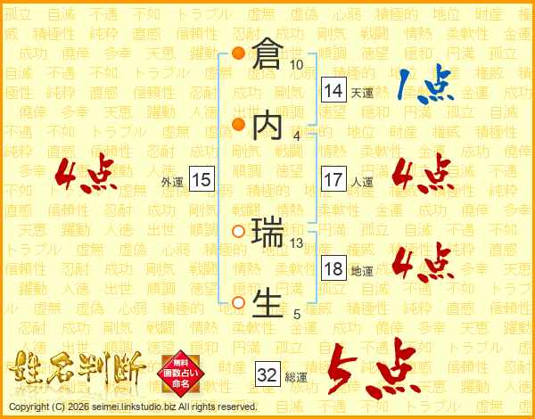 倉内瑞生さんの総運は32画の5点!