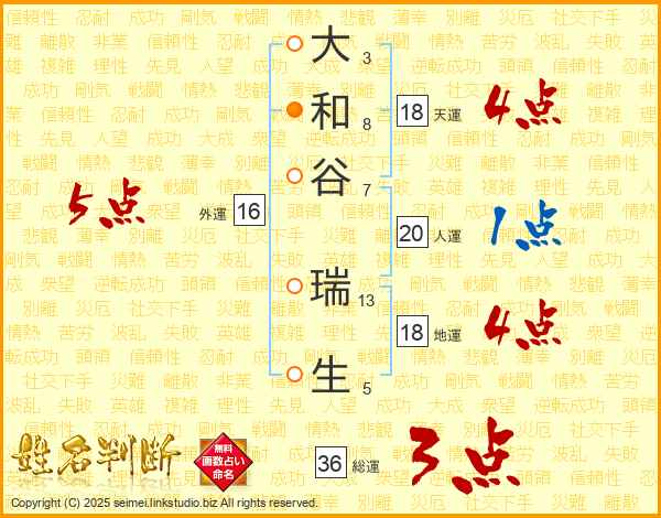 大和谷瑞生さんの総運は36画の3点!