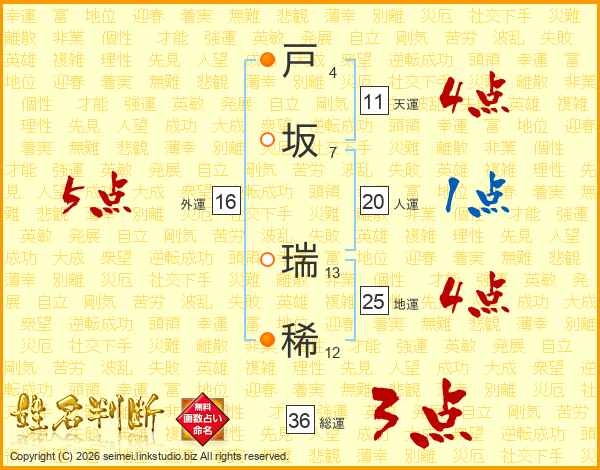 戸坂瑞稀さんの総運は36画の3点!