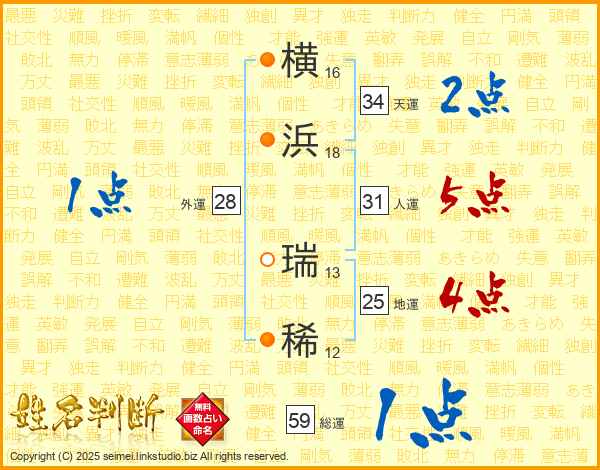 横浜瑞稀さんの天運は34画の2点!