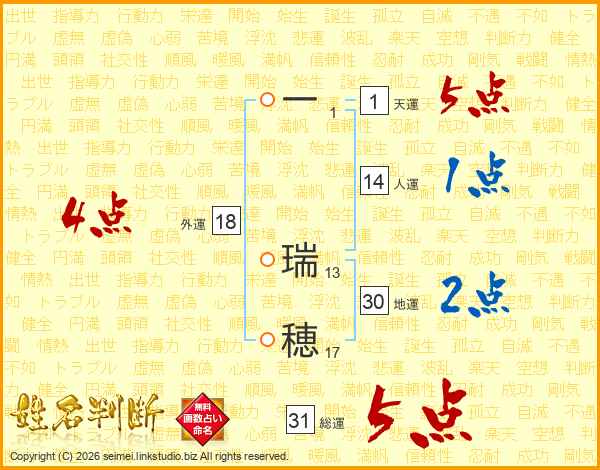 一瑞穂さんの総運は31画の5点!