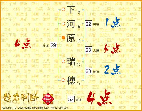 下(3画)河(9画)原(10画) 瑞(13画)穂(17画)
