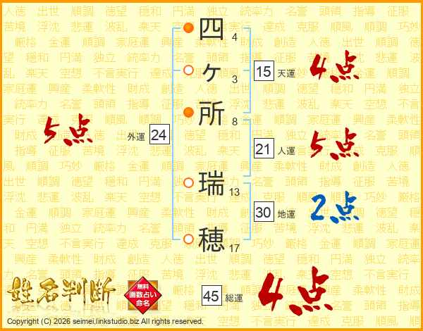 四(4画)ヶ(3画)所(8画) 瑞(13画)穂(17画)