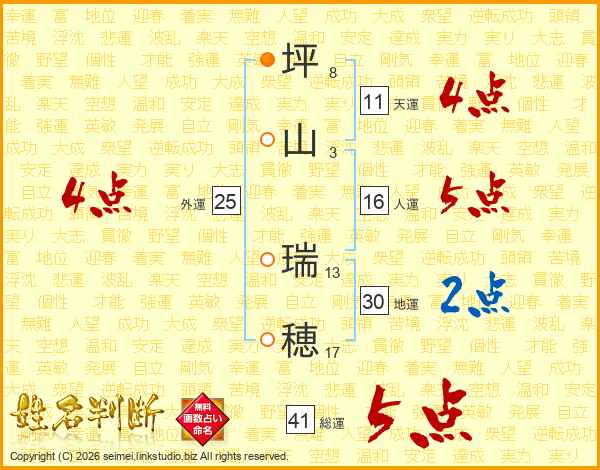 坪(8画)山(3画) 瑞(13画)穂(17画)