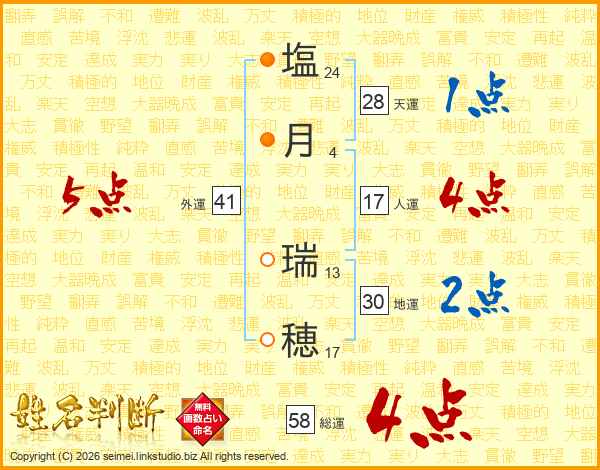 塩(24画)月(4画) 瑞(13画)穂(17画)