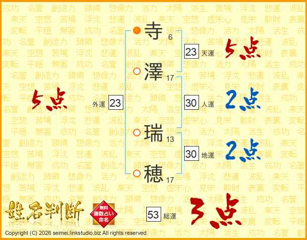 寺(6画)澤(17画) 瑞(13画)穂(17画)
