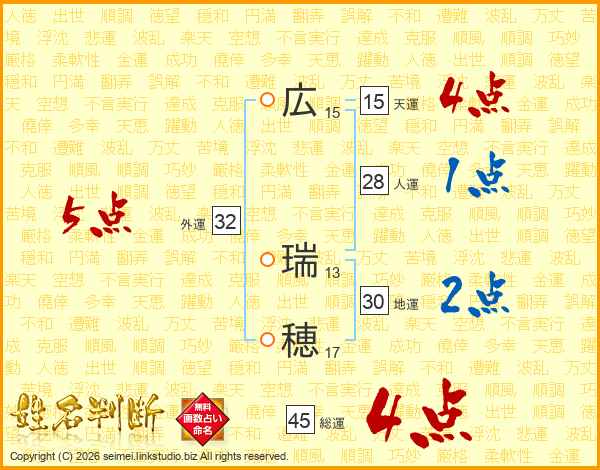 広瑞穂さんの総運は45画の4点!