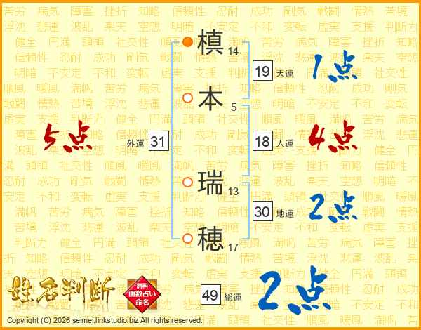 槙(14画)本(5画) 瑞(13画)穂(17画)