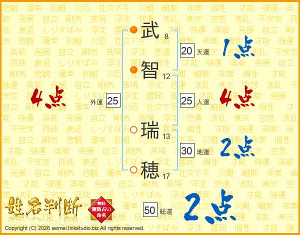 武(8画)智(12画) 瑞(13画)穂(17画)