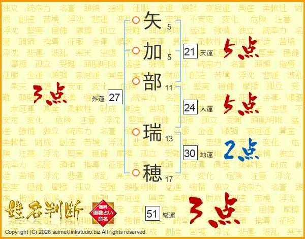 矢加部瑞穂さんの総運は51画の3点!