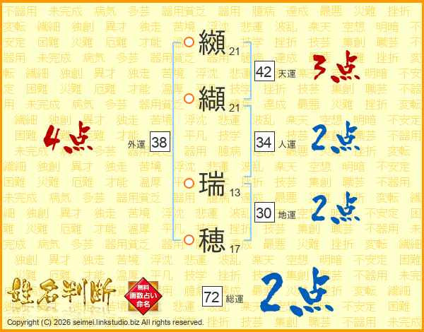 纐纈瑞穂さんの総運は72画の2点!